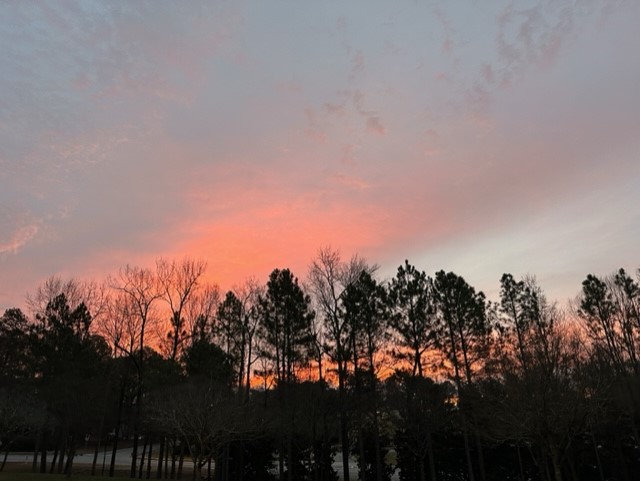 The cold breeze whipping into my coat urged me to walk faster on a forsty day in winter, but cold or not I walked early in the morning to see the sunrise. I love walking in my neighberhood early in the morning when few cars are on the road. Winter is papalable most mornings on my walks. Some days this past month I shortened my walk due to the cold wind. Some morning though, the sunrises were magnificent.